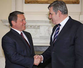His Majesty King Abdullah is greeted by British Prime Minister Gordon Brown (click title to entry - thank you) ahead of their meeting in London yesterday (Photo by Yousef Allan)